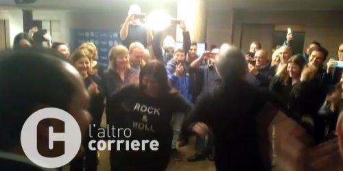 Tutti i colonnelli di Forza Italia si scatenano in hotel per celebrare la vittoria elettorale. Anche Tajani e Gasparri a centro pista