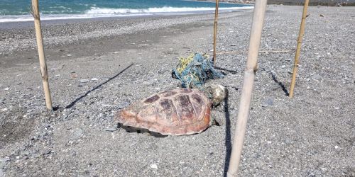 L’esemplare, spiaggiato sul litorale lametino, aveva un pezzo di rete “fantasma” stretto al collo