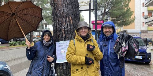 Le associazioni hanno protestato contro «il taglio ingiustificato dei pini» in via Don Minzoni. «Presidiamo i nostri territori, non ci fermeranno»