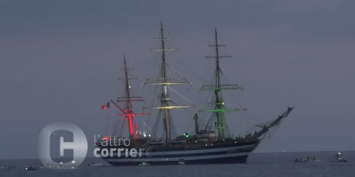 L'Amerigo Vespucci a Falerna. Con l’ammaina bandiera si conclude il viaggio in Calabria – VIDEO
