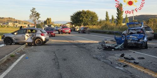 Coinvolti tre veicoli nei pressi del centro commerciale. Due persone rimaste incastrate nell’abitacolo sono state estratte dai Vigili del Fuoco