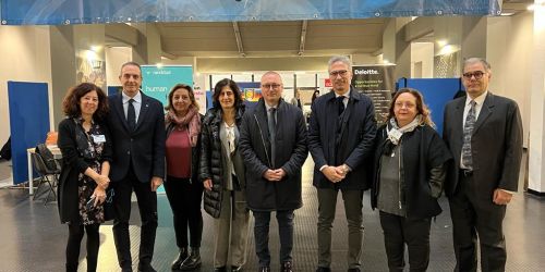 Agli stands delle imprese il Rettore Zimbalatti, il sindaco ff Versace, il presidente della Camera di Commercio Tramontana e il Presidente della “Cis…