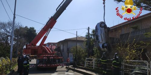 Ancora ignote le circostanze che hanno portato la Ford Focus a uscire fuori strada, finendo in un cortile di un’abitazione a Vena di Maida