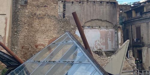 Cosenza, crolla il muro di un palazzo nel centro storico – FOTO