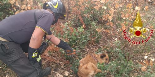 Mesoraca, un cane si incastra in un cavo d’acciaio e resta ferito: salvato dai Vigili del Fuoco