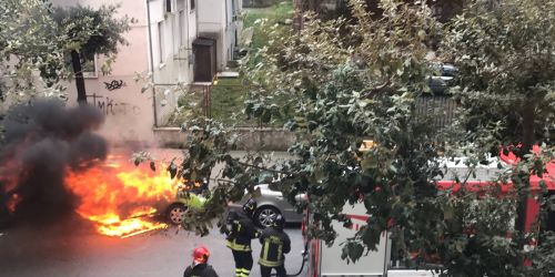 Cosenza, auto in fiamme in pieno centro – VIDEO