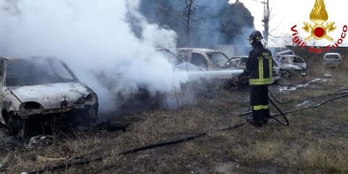 Dieci le vetture distrutte dalle fiamme. Sul posto sono intervenuti i Vigili del fuoco