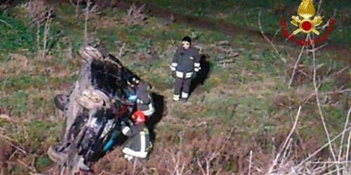 L’uomo è stato soccorso dal personale del 118. Sul posto i vigili del fuoco che hanno recuperato la vettura con un autogru
