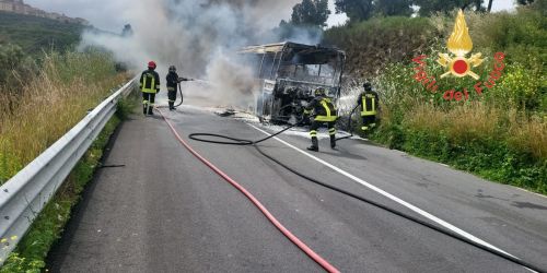 Paura nel Catanzarese, autobus prende fuoco e viene avvolto dalle fiamme: salvi tutti i passeggeri