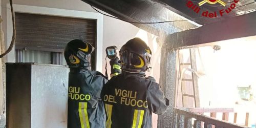 In fiamme la veranda in legno in un palazzo, vigili del fuoco in azione a Mileto – FOTO